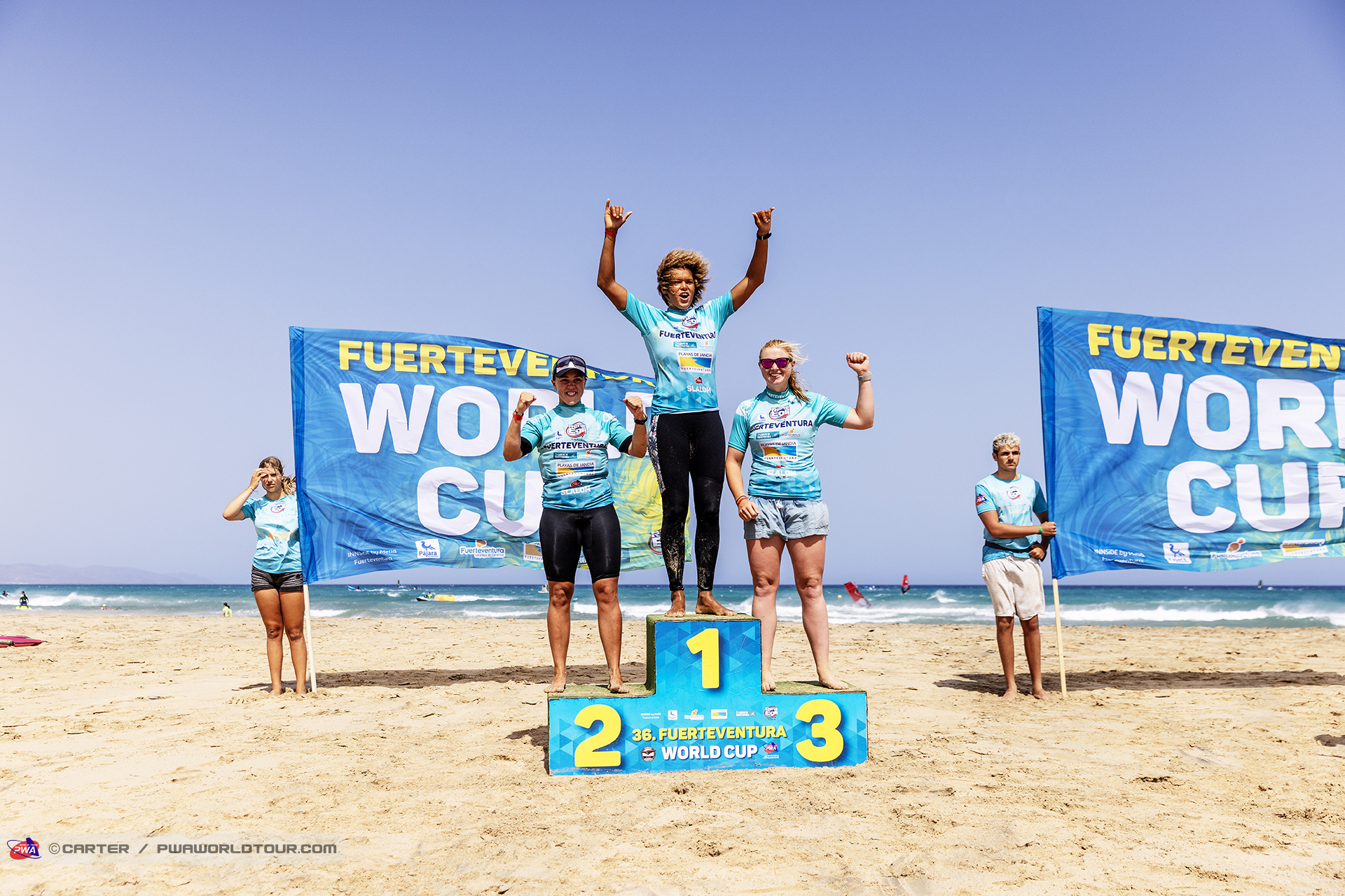 Marion Mortefon (PATRIK / PATRIK Sails) completes the event podium in Fuerteventura, but just misses out on the final place on the prestigious overall podium to Jenna Gibson (Duotone Windsurfing), who secures third place in the world for 2024 on countback.