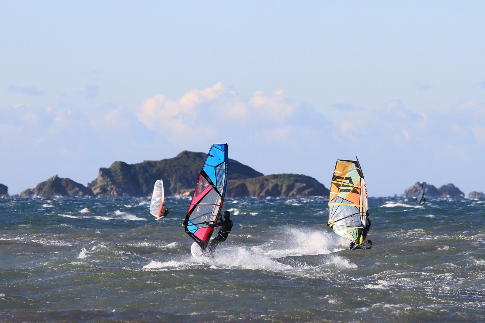 Heute waren ein paar surfbare Böen dabei. Eigentlich wollten wir bei der Vorhersage mit dem Boot angeln aber da war der Wind schon zu viel und fürs surfen reichte der Wind gerade so. Wind N-NW bei Sonnenschein.