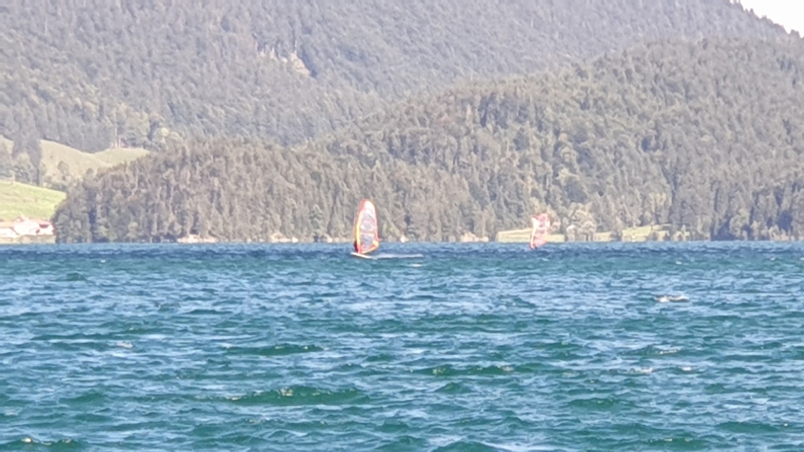 Slalom with 5.6 Sail / Goya Proton 96 in flying water. No good idea finally ;-) Lake Kochel. Thx. Walter for shooting!
