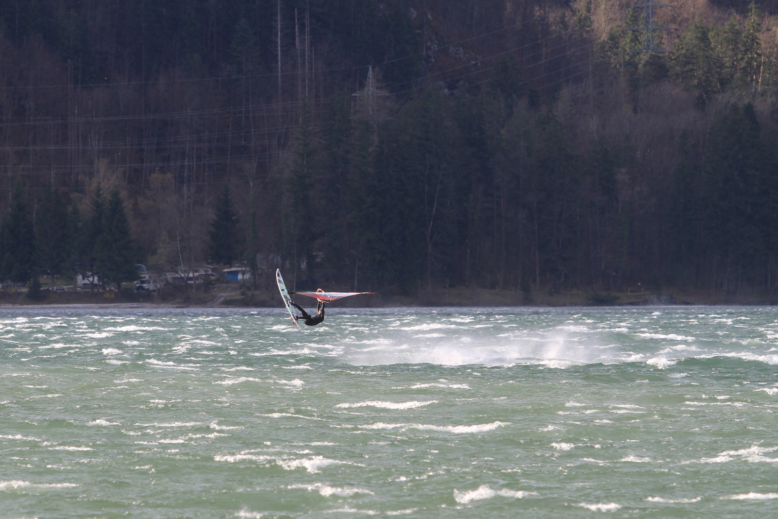 Big Friday! Am Ufer stehend hätte man die Bedingungen heute Vormittag schnell als unfahrbar bezeichnet. Ein paar wirklich gute Windsurfer bewiesen jedoch das Gegenteil. Gemessene Spitzenböe an der Messstation am Trimini 51 Knoten – auf dem Wasser war es heute sicher kein Spaziergang.