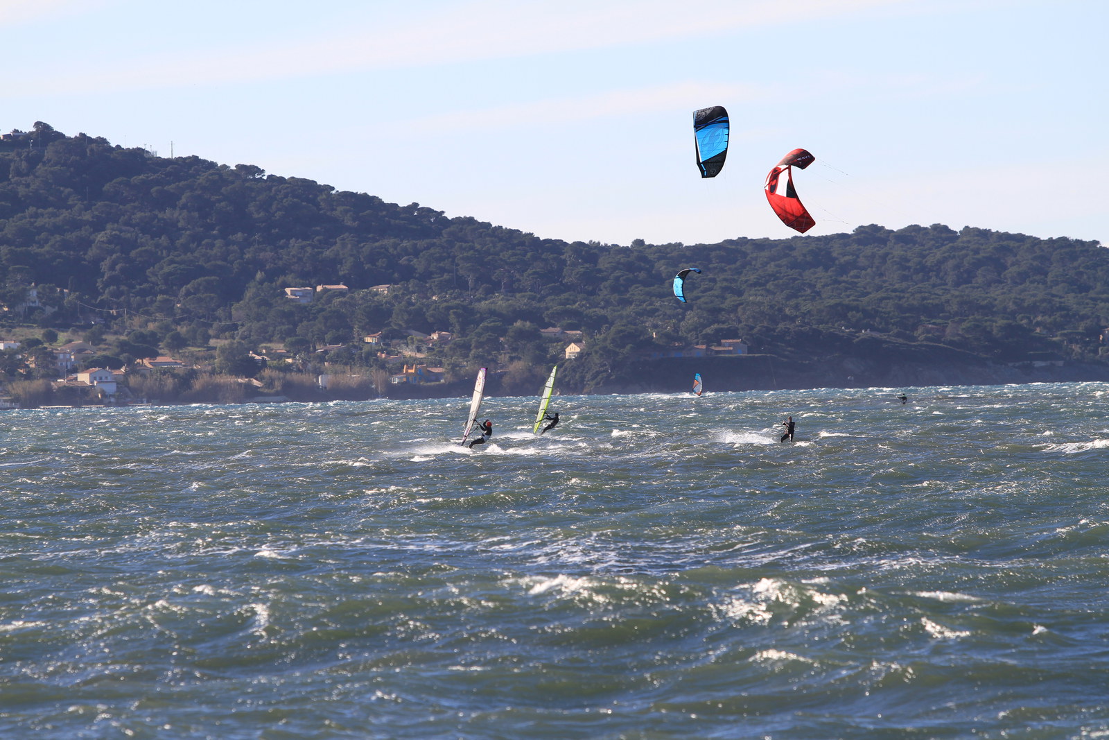 Sehr gute Bedingungen heute, allerdings auch ganz schön viel los auf dem Wasser. Mit Segeln um die 5qm war man heute gut unterwegs. Luft um die 13 Grad, das Wasser etwas wärmer.
