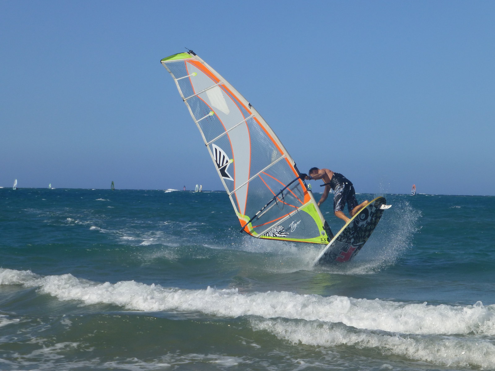 Heute der meiste Wind im Urlaub. Leider gab es im Verleih kein kleineres Segel mehr, musste so gehen :(