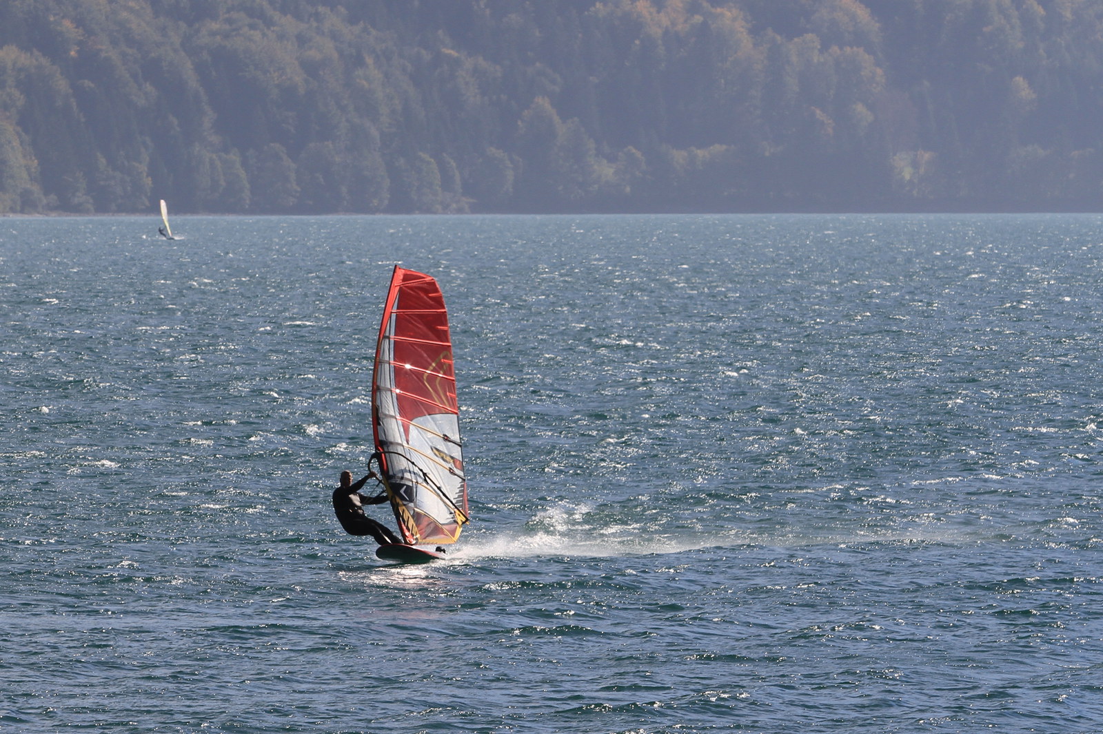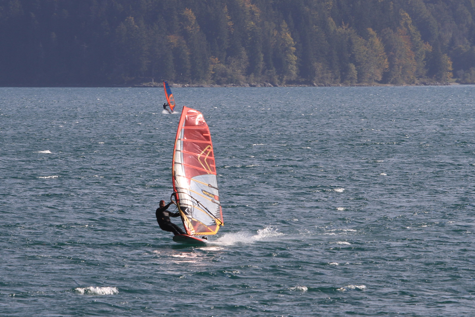 06:45 - angekommen am Kochelsee und die letzten Böen übers Wasser huschen sehen. Anschließend hoch zum Walchensee, frühstücken. Gerade die letzte Semmel verdrückt, fing dort schon der Wind an. Schnell aufgeriggt und wow....perfekte Bedingungen. Ein paar schöne Matchraces gefahren und mit einigen Freunden gemeinsam auf dem Wasser - super war es.