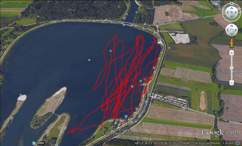 Gute zwei, teilweise sonnige Std. erwischt. Wind war ganz schön rauf und runter ca. 10-25kn. Deßhalb großes Board und etwas längere Finne gewählt und die war mal richtig geil zu fahren, freu mich schon auf konstantere Bedingungen mit diesem Masterpeace !!